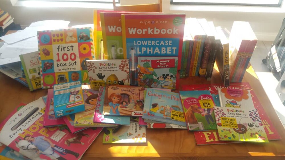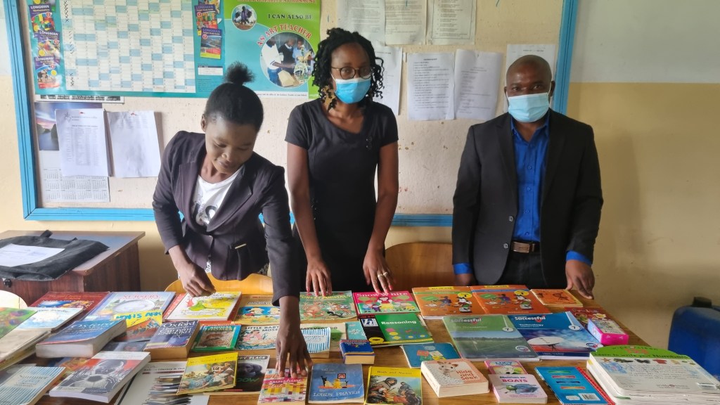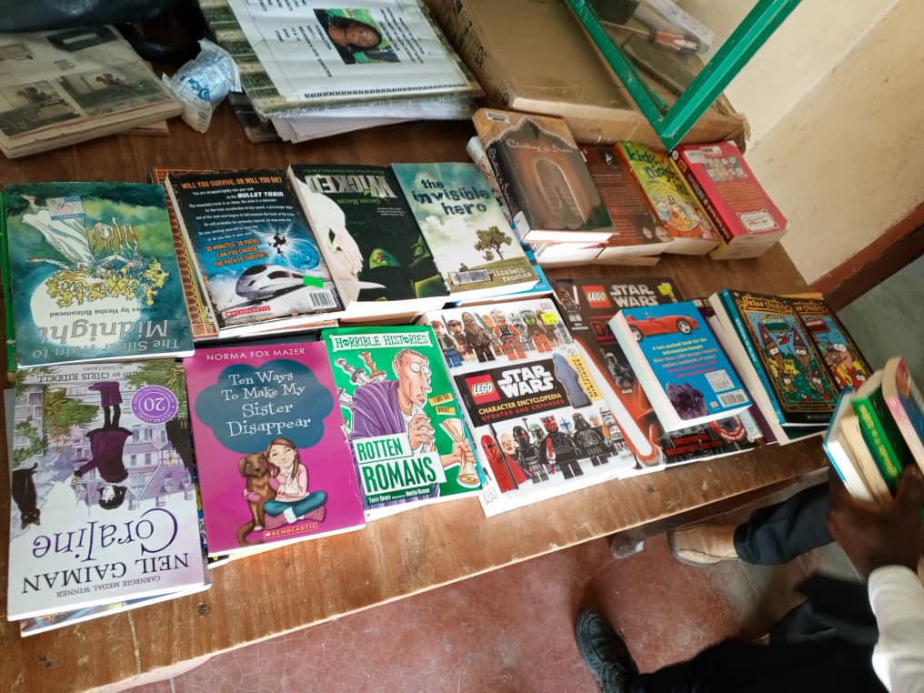 Oct 2021 – Some of the books donated to Nampamba School in Mpongwe