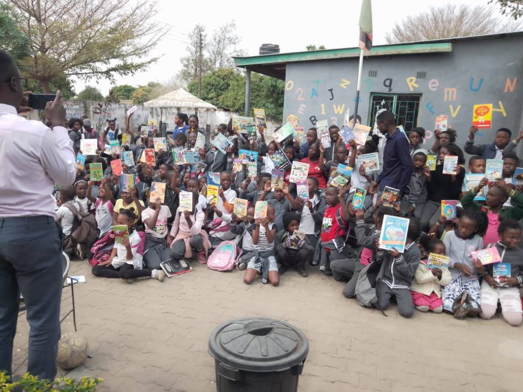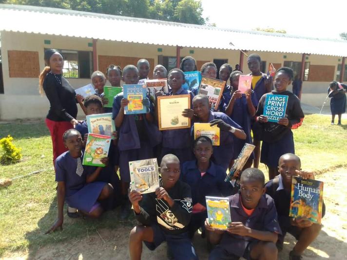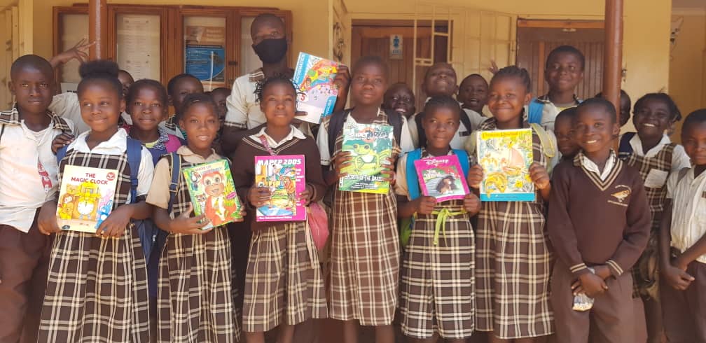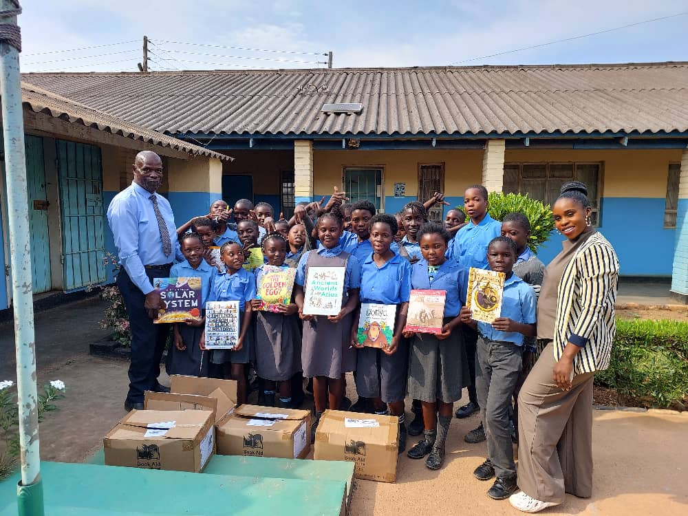 Oct 2021 – Learners with books donated to Nampamba School in Mpongwe