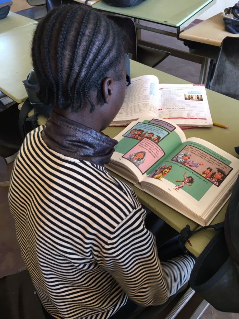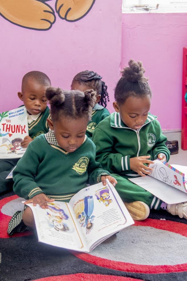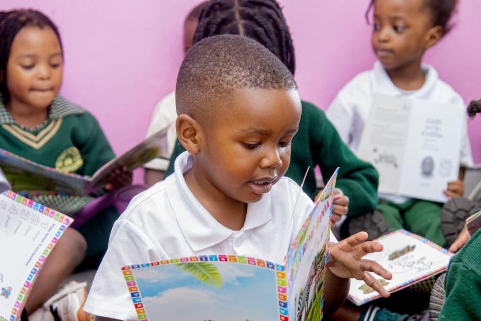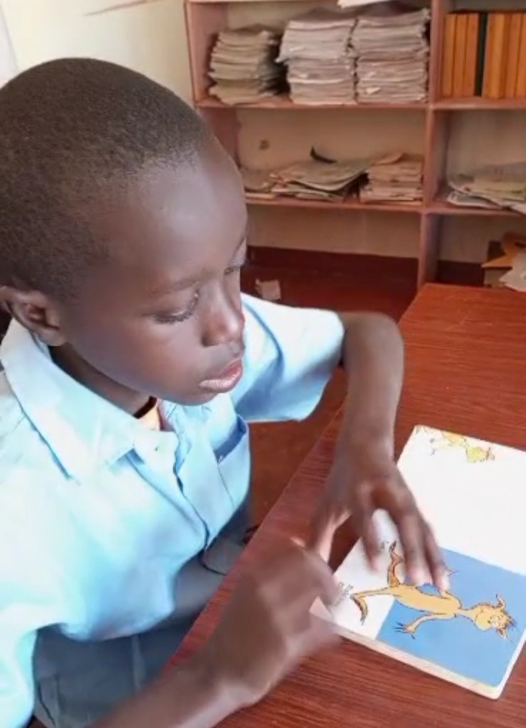 2023 Jun – Learner at Palabana Children’s Village School reading one of the books gifted to the school