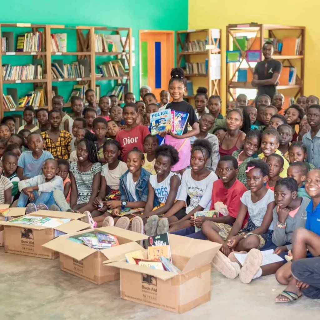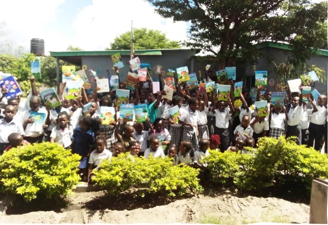 Jun 2023 – Learners at Kampemba School, Mpongwe, holding up the books gifted by KLOC